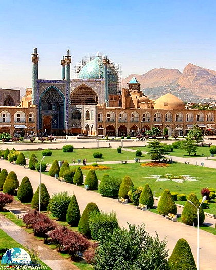 Iran » IRN Upon entering Naqsh-e-Jahan Square, you will find yourself under surveillance and protection from all four sides. All edges of this rectangular square align with the four cardinal directions and are adorned with four markets: the Imam Mosque (Shah), the Sheikh Lotfollah Mosque, the Ali Qapu Palace, and the Qeysarieh Market. |