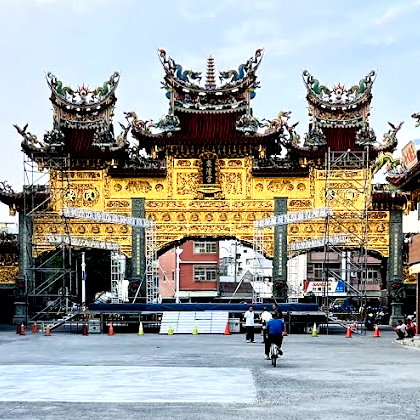 | The temple dedicated to the god Wen Wang Yan is located on Zhongzheng Road in Donggang Township. The Donggang King's Boat Festival, held every three years, is famous throughout Taiwan. Additionally, the enormous, ornate archway in front of the main entrance of Donglong Temple, made of pure gold leaf, is incredibly magnificent and spectacular. | |