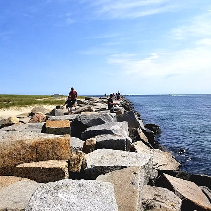 | Scusset Beach State Reservation is a public recreational area located in the town of Sandwich, Barnstable County, Massachusetts, east of the Cape Cod Canal, on land formerly belonging to the Sagamore Hill Military Reserve. Enjoy the 2.4 km of beach or take a stroll along the pier to watch the ships pass through the Cape Canal. | |