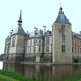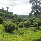 The Marqueyssac gardens are on a hill overlooking the Dordogne River, with splendid views. The primary planting is boxwood hedging, with cypress and wild cyclamen.