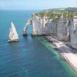 Etretat is a commune in the Seine-Maritime department in the Normandy region of Northwestern France. It is a tourist and farming town. Its population was 1,167 in 2022. It is best known for its cliffs, including three natural arches and the pointed needle.