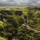 Fjaorargljufur is a breathtaking canyon located in the southern part of Iceland, near the village of Kirkjubajarklaustur, known for its dramatic and otherworldly landscape. It's approximately 2 kilometers (1.25 miles) long and up to 100 meters (328 feet) deep, with the Fjora river flowing through it.