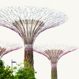 Gardens by the Bay is a nature park located in Singapore, adjacent to the Marina Reservoir. The park spans over 100 hectares and is known for its iconic Supertree Grove, which features 18 vertical gardens ranging in height from 25 to 50 meters tall.