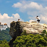 Wuliaojian is probably THE must-do hike in the Taipei area. It is a tough climb through a lush forest up to a craggy ridge that is only a few feet wide in places. The highlight for most visitors is the 20 meter near-vertical cliff face that you have to climb down on a rope! Throughout the hike you will be climbing up rock faces, pulling yourself up rope ladders and balancing on the razor-like ridge.
