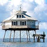the Middle Bay Lighthouse is a historic lighthouse located in Mobile Bay, southwest of the city of Mobile, Alabama. It is located approximately 3 miles offshore from Fort Morgan. It is an active hexagonal-shaped cottage style screw-pile lighthouse.