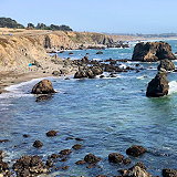 Schoolhouse Beach is a picturesque and secluded beach located near Bodega Bay in Sonoma County, California. Steep cliffs, crashing waves, and tidal pools create a peaceful and idyllic beach. During low tide, visitors can explore the tidal pools surrounding the rocks. Sometimes, visitors can see seasonal whales from the cliffs.