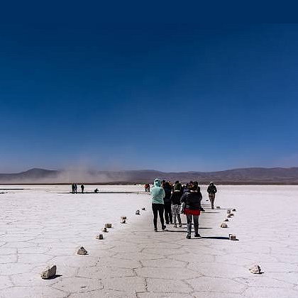 Argentina » ARG Salinas Grandes is a vast salt flat in north-central Argentina. Stepping onto the salt flat at an altitude of 3,400 meters, you will be surprised by one of the country's most bizarre and desolate places. This salt flat stretches across two provinces and covers an area of over two hundred square kilometers. |