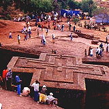 Lalibela is a town in the Amhara region of Ethiopia. Located in the Lasta district and the North Wollo area, it is a tourist destination known for its famous monolithic churches carved from stone. The whole of Lalibela is a vast and important site for Ethiopia's ancient, medieval, and post-medieval civilizations. For Christians, Lalibela is one of Ethiopia's holiest cities and a center of pilgrimage.