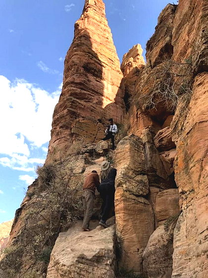 | The Abuna Yemata Guh Mosque is a monolithic mosque located in the Hawzen district of the Tigray region of Ethiopia. Situated at an altitude of 2,580 meters (8,460 ft), it is accessible only by hiking. It is notable for its dome and frescoes dating back to the 5th century, as well as its unique architecture. | |