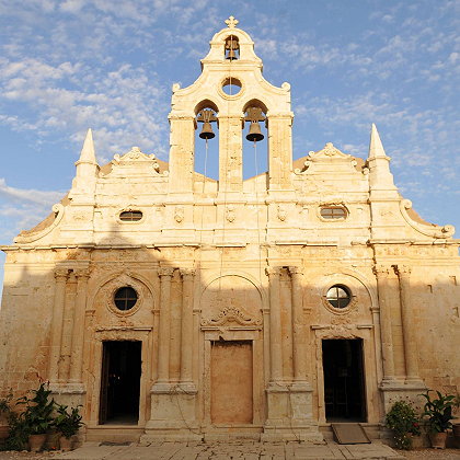 | The Arkadi Monastery is an Eastern Orthodox monastery, situated on a fertile plateau 23 km (14 mi) to the southeast of Rethymno on the island of Crete in Greece. It is one of the Orthodox monasteries that accentuate the catholic and ecumenical character of the Church. Each year the monastery welcomes and hosts visitors and pilgrims coming here from various countries and faraway civilizations. | |