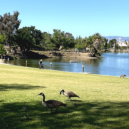 | Almaden Lake Park in San Jose, CA, is a 65-acre city park featuring a central 32-acre lake in Almaden Valley, known for its wide range of outdoor activities and family-friendly amenities. The lake and island are reclaimed gravel pits that create varied aquatic habitats. Riparian zones support woodpeckers, kingfishers, mergansers, and, on rare occasions, ospreys or bald eagles. | |