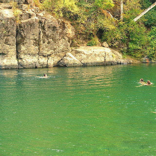 | The beach features a half-mile round-trip hiking trail that leads to the swimming area, which is characterized by a mix of sandy and rocky terrain. Visitors can enjoy swimming in the cold, clear waters of the Smith River. The area also has spots for cliff jumping, appealing to thrill-seekers. | |