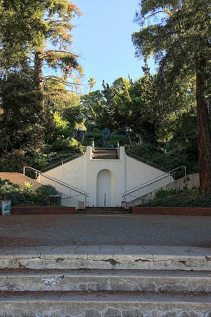 | The Cleveland Cascade is a 250-foot-long ornamental stairway near Lake Merritt in Oakland, California, with cascades in the center, designed in 1923 by Howard Gilkey. It ascends from Lakeshore Ave., which runs along the shore of the lake, to Merritt Ave. and the San Antonio neighborhood. | |