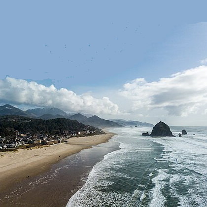 | Cannon Beach is a famous, picturesque small-town village by the sea. It’s been recognized as the “best overall beach in Oregon”, one of America’s best art towns, and one of the world’s most beautiful places. Known as one of the Northwest’s top art towns, Cannon Beach is replete with art galleries, specialty shops, cafes, and fine dining restaurants. Visitors can watch glass blowers at work in their studio or attend year-round live theater performances. This creative edge can be seen in everything from the sensibility of the town’s residents to the annual sandcastle building competition that spotlights stunning works of art adorning the sandy beach. | |