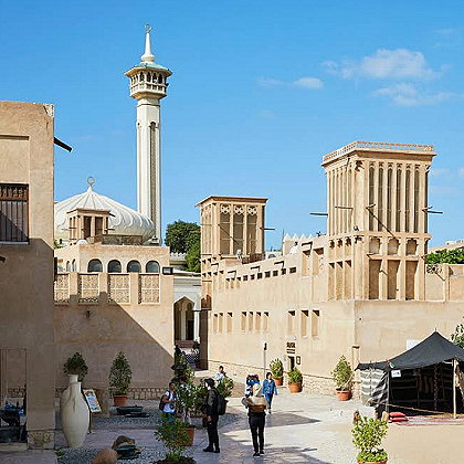 | Discover life in Dubai in the mid-19th century in the Al Fahidi Historic District. Situated along the Dubai Creek, this area is a significant historical landmark with much of its original infrastructure preserved intact. The traditional wind towers – constructed from sandstone, teak, plaster, palm wood, and sandalwood – are just a small part of Al Fahidi's history. | |