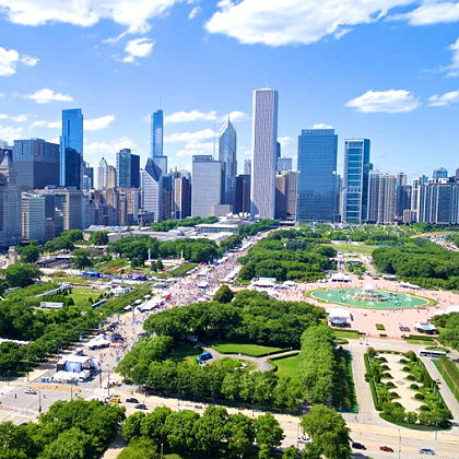 | Grant Park totals 312.98 acres and is a public park located in Chicago’s central business district in the Loop Community area. Grant Park’s most notable features include Maggie Daley Park, Buckingham Fountain, the Art Institute of Chicago, and a portion of the Museum Campus that includes the Field Museum and the Shedd Aquarium. | |