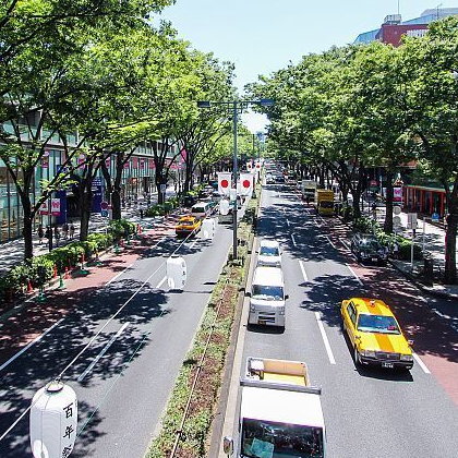 | The focal point of Harajuku's teenage culture is Takeshita Dori (Takeshita Street) and its side streets, which are lined by many trendy shops, fashion boutiques, used clothes stores, crepe stands and fast food outlets geared towards the fashion and trend-conscious teens. Just south of Takeshita Dori and over twice its length is Omotesando, a broad, tree-lined avenue sometimes referred to as Tokyo's Champs-Elysees. Here you can find famous brand name shops, cafes and restaurants for a more adult clientele. | |