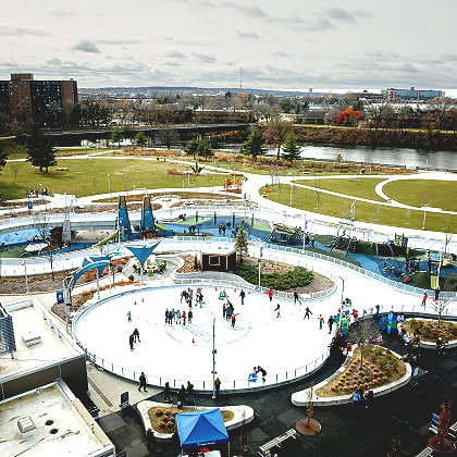| Howard Park is South Bend’s first and oldest park. Howard Park’s 16,000 square foot ice trail and pond is a premier winter destination for the South Bend region. The ice trail features rolling hills and soft curves that provide skaters with a diverse terrain when making their way around the loop. | |