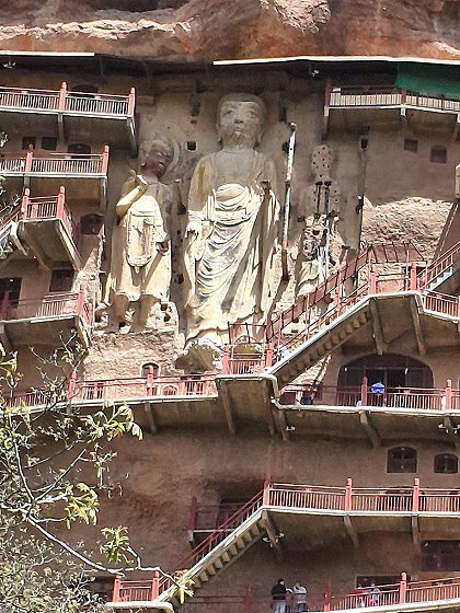 | Maijishan Grottoes, also called Maiji Mountain Grottoes or Maijishan Caves, is located in Maiji District, Tianshui City, Gansu Province, northwest China. Together with Longmen Grottoes, Yungang Grottoes and Dunhuang Grottoes, they are the "Four Greatest Grottoes in China". | |