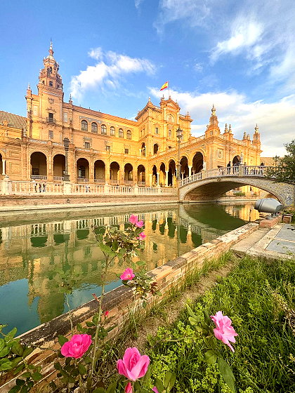 | The Plaza de España has a total area of 50,000 square meters, making it undoubtedly the most imposing square in Spain. Along the entire perimeter of the square stretches a 515-meter-long canal, which you can travel on board a boat. Undoubtedly, a romantic experience. | |