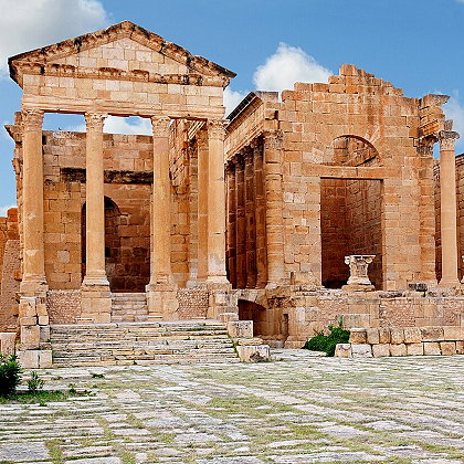 | Sbeitla is a small town in central-western Tunisia, 250km from Tunis. It is famous for its unique Roman ruins and the Capitol, which includes not one but three temples dedicated to Minerva, Jupiter, and Juno, the patron goddesses of Rome. | |