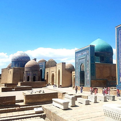 | The complex consists of a series of mausoleums and tombs, which were built over several centuries, from the 11th to the 19th centuries. The earliest structures are simple brick buildings, while the later ones are more elaborate and feature intricate tilework, carving, and other decorative elements. One of the most striking features of Shah-i-Zinda is the use of brilliant blue tiles, which cover the walls and domes of many of the buildings. The tiles are arranged in intricate patterns, and they create a stunning visual effect. Another notable feature of Shah-i-Zinda is the way in which the tombs and mausoleums are arranged along a narrow alleyway, which creates a sense of depth and perspective. Visitors can walk through the alleyway, exploring the various tombs and admiring the architecture and decoration. Overall, Shah-i-Zinda is a testament to the rich history and cultural heritage of Uzbekistan and Central Asia. It is a must-visit destination for anyone interested in Islamic art and architecture, as well as for those who simply appreciate beauty and history. | |