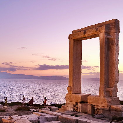 | The Temple of Apollo is a massive marble gateway and the only surviving part of the unfinished Temple of Apollo from 530 BC, which is the island's main symbol and landmark. Standing on the islet of Palatia, at the entrance to Naxos harbor, it comprises four marble parts weighing about 20 tons each. | |