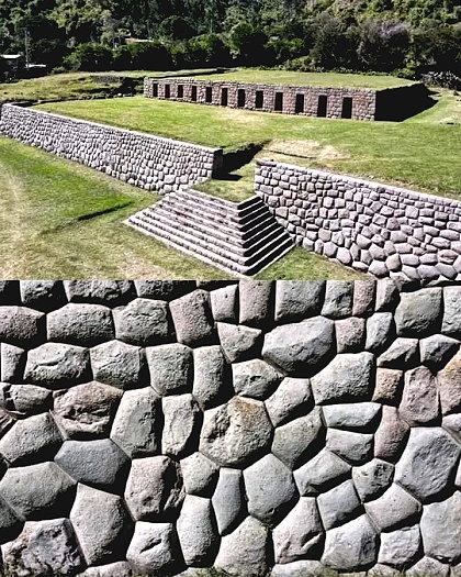 | Tarawasi was built during the reign of the Inca king Pachacuti (Pachacuteq) (c. 1438–1471) and was once an important ceremonial and religious center. It features two ceremonial platforms, with trapezoidal niches in the walls intricately carved in a pattern of panels or cushions. These niches are adorned with images of flower petals formed by their combination. | |