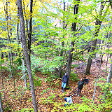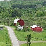 There are two main drops to the Wiscoy Falls. The lower is about 15' high, and the upper is 25' high, with numerous smaller drops along the way. Above the falls is a dam. The lower drop is easily seen from the road, with the upper falls visible in the distance.