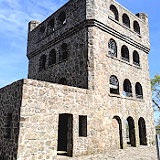 The round stone observation tower of native trap rock was built by local stone masons in 1900. It stands on East Peak with an elevation of 976 feet. The tower is 32 feet in height and 58 feet in circumference. An interior stairway provides access to the observation deck.