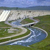 Friant Dam is a concrete gravity dam on the San Joaquin River in central California, straddling the border of Fresno County and Madera County. It was built to provide irrigation water to the southern San Joaquin Valley. It impounds water from Millerton Lake, a 4,900-acre (2,000 ha) reservoir located approximately 15 miles (24 km) north of Fresno.