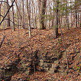 The west-facing site is open and dry, with exposed bedrock. It is bounded by two small ravines that are branches of Pleasant Grove Creek. The northern ravine is dry and the southern ravine has running water. In the forest stand, red, white, black, and chestnut oaks are common, together with shagbark, pignut, and bitternut hickories.