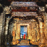 | Kailasha Temple is the largest Hindu temple carved into the rock in the Ellora Caves complex in Sambhaji Nagar district, Maharashtra state, India. Built on a cliff face, this structure is considered one of the most remarkable cave temples in the world due to its size, architecture, and unique sculptural techniques. | |
