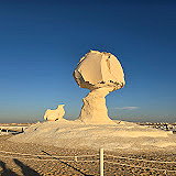 | White Desert National Park in Egypt is the site of large white chalk rock formations, created through erosion by wind and sand. It is also the site of cliffs, sand dunes, as well as Wadi Hennis and oases at Ain El Maqfi and Ain El Wadi. The highest point in the park is at El Qess Abu Said at 353 m (1,158 ft) above sea level, and the lowest is at Wadi Hennis at 32 m (105 ft). | |