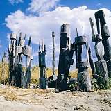 | Formed over 1500 million years ago, the Karlu Karlu/Devils Marbles defy gravity. In the Karlu Karlu/Devils Marbles Conservation Reserve, these boulders have seemingly dropped from the sky. The marbles balance precariously atop each other in mind bending formations. The granite boulders glow a stunning red in the early morning and as the sun sets each day. | |