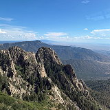 Sandia Crest, also known locally as Sandia Peak, is a mountain ridge of the Sandia–Manzano Mountains, and is located in the Sandia Mountains of Bernalillo County, New Mexico. The Sandia Mountains lie to the east of Albuquerque. Named after the Spanish word for watermelon, the Sandias turn gorgeous shades of pink when the sun sets on the city.