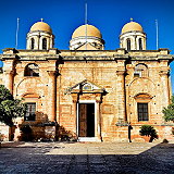 The Arkadi Monastery is an Eastern Orthodox monastery, situated on a fertile plateau 23 km (14 mi) to the southeast of Rethymno on the island of Crete in Greece. It is one of the Orthodox monasteries that accentuate the catholic and ecumenical character of the Church. Each year the monastery welcomes and hosts visitors and pilgrims coming here from various countries and faraway civilizations.