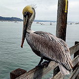 Morro Rock stands 576 feet tall and is perched on the edge of the Pacific Ocean at the mouth of the harbor. A causeway connects it with the shore, making it a tied island. The rock is protected as the Morro Rock State Preserve. It is home to nesting Peregrine Falcons and is part of a chain of nine volcanic peaks that extend from San Luis Obispo to Morro Bay known as the Nine Sisters.