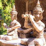 Secret Buddha Garden, also known as Magic Garden and Heaven's Garden and Tarnim Magic Garden is a private sculpture park atop Pom Mountain, one of the highest peaks on the resort island of Ko Samui in Surat Thani Province, Thailand. At the Magic Garden you'll find all sorts of sculptures, enclaves and houses with thick vegetation growing wild on the roofs.