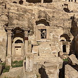 The Kızılkoyun Roman Tombs (Kızılkoyun Nekropolü) in Şanlıurfa, Türkiye, is an important archaeological site dating from the Roman period, specifically from the 2nd to the 4th centuries AD. The necropolis comprises between 75 and 103 tombs carved into the rock face and decorated with reliefs, sculptures, and even door mechanisms.