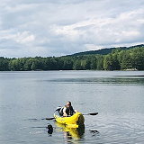 Green River Reservoir State Park is a 5,500 acres (2,227 hectares) state park in Hyde Park, Vermont, on the shore of 653-acre Green River Reservoir (264 ha). Green River Reservoir provides camping and paddling experiences in a remote setting. All campsites can only be reached by paddling to them - some are a 1 to 2-mile paddle from the launch site.