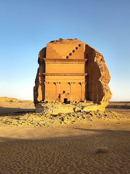 Saudi Arabia » SAU The tomb of Lihyan, son of Kuza, also known as Qasr Al Farid or “Lonely Castle,” is a famous and iconic mausoleum in Mada’in Salih, Hegra, Al Ula, Saudi Arabia. It is believed to have been built in the first century AD and is unmatched in its ancient design and architecture. |